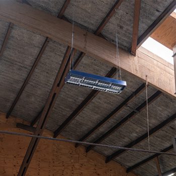 Promiennik elektryczny Infra ER można łatwo podwiesić pod sufitem lub przymocować do ściany za pomocą opcjonalnej konsoli montażowej.